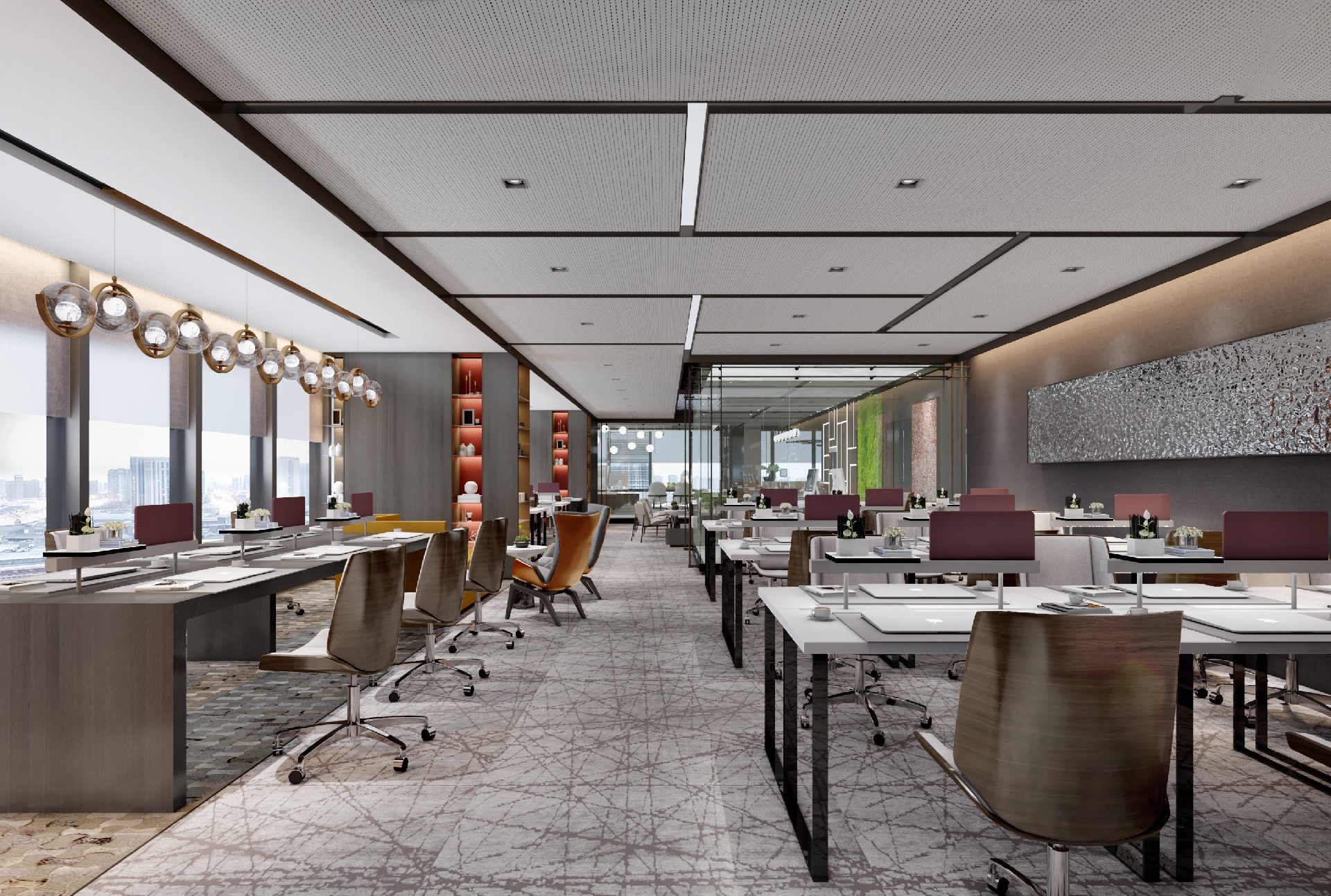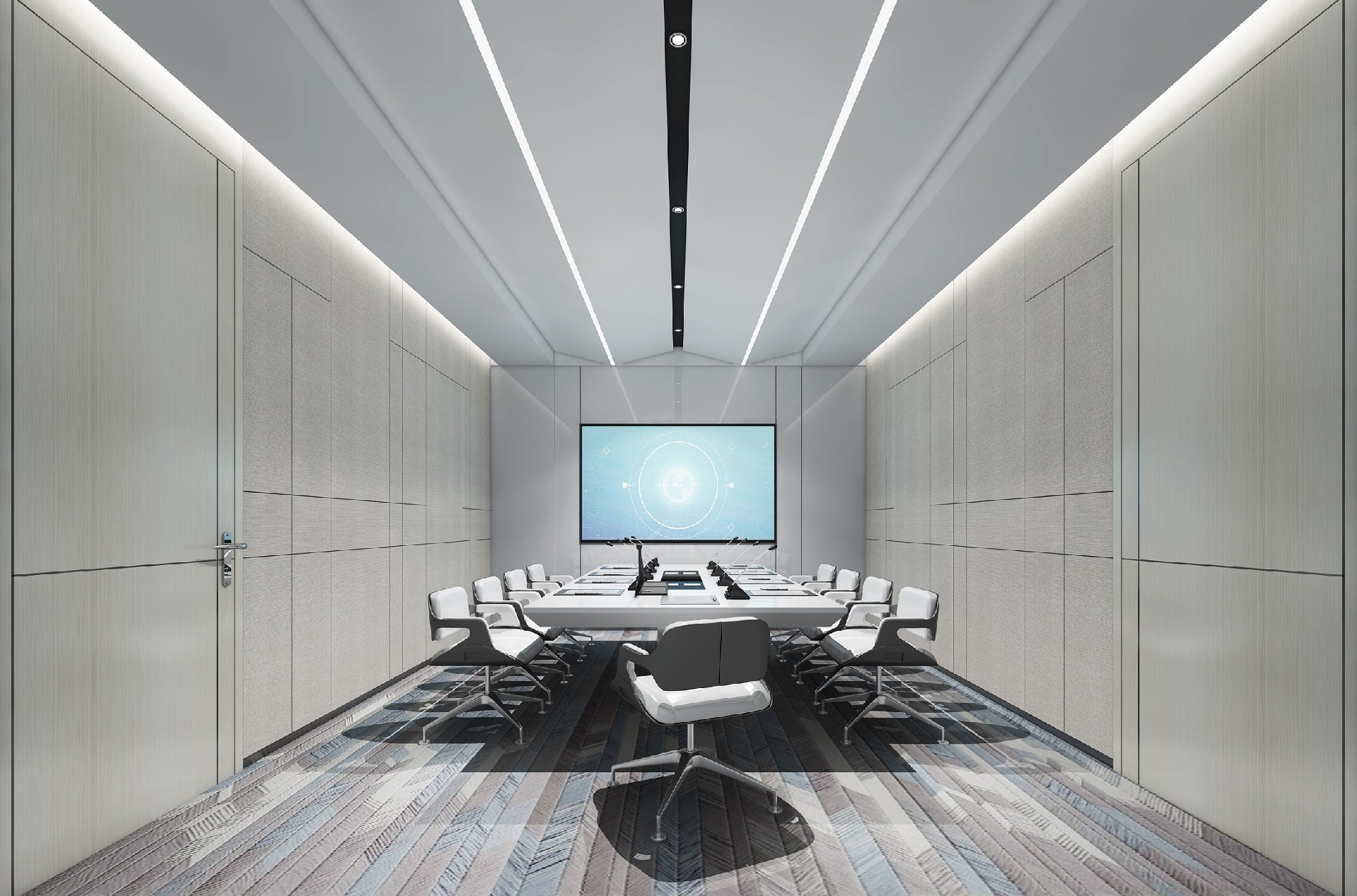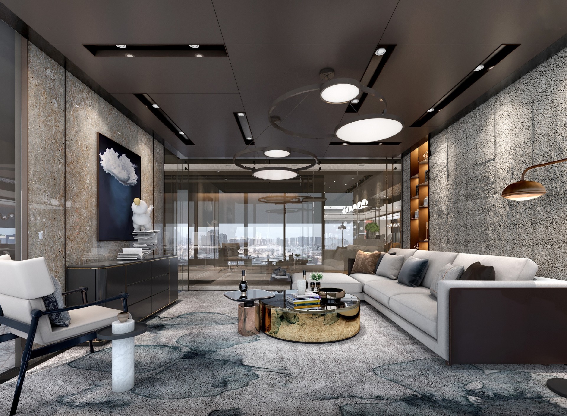 本案在這個辦公室設(shè)計中,甲方要求,有功能區(qū)設(shè)置,有總經(jīng)理,總經(jīng)理是本公司中最高的職務(wù),所以在我的設(shè)計中給他選擇了一個比較好的朝向,采光比較好、地面采用仿古顯紋復(fù)合強化淺色木地板。防滑耐磨。幾何式的辦公桌莊嚴(yán)不失人性化。自然的美巧妙的運用到設(shè)計之中,突顯對美好生活的向往。放松工作時的狀態(tài),副總經(jīng)理兩間,裝修風(fēng)格跟總經(jīng)理相符,比較統(tǒng)一。會議室,在平面功能上??紤]了合理的行動路線,東面墻對應(yīng)窗的位置設(shè)計了落地的玉砂玻璃隔墻,以滿足展示區(qū)的采光要求。